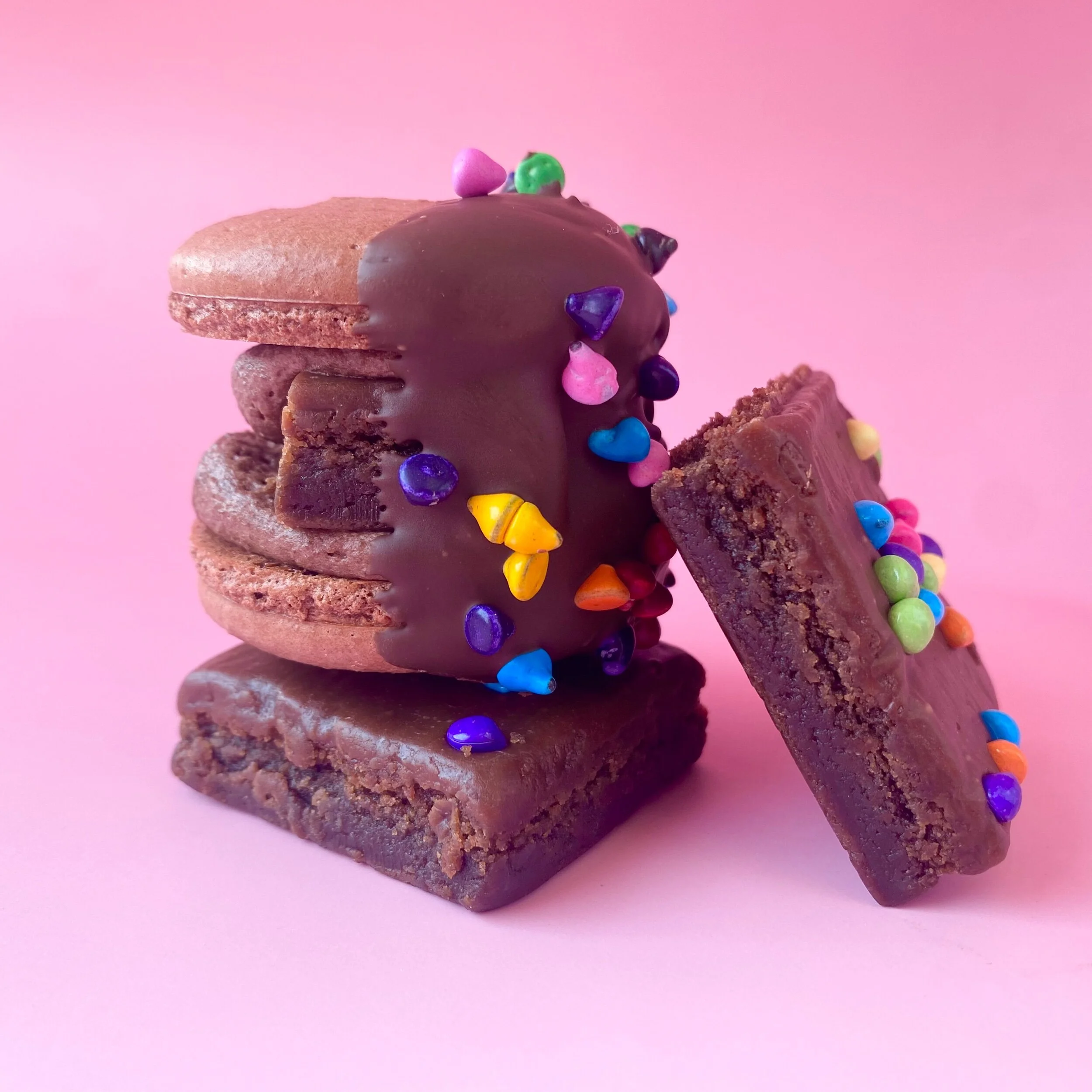 Shop › Cosmic Brownie Batter Big Mac (Not GF) Image 1 of 1 Cosmic Brownie Batter Big Mac (Not GF) $4.00 Brownie Batter filling sandwiched between a slice of Lil Debbie Cosmic Brownie. Chocolate dipped shell with rainbow chips. Quantity: Add To Cart Added! Brownie Batter filling sandwiched between a slice of Lil Debbie Cosmic Brownie. Chocolate dipped shell with rainbow chips.